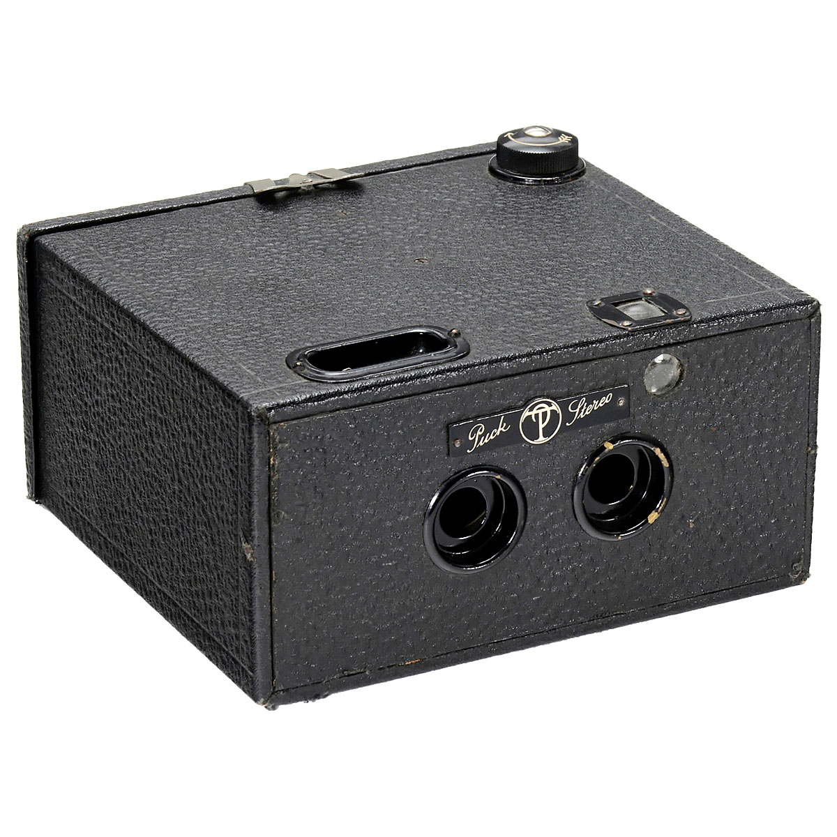 Thornton-Pickard, Altrincham, England, UK. Box-form stereo camera for rollfilm 620 and 120, image size 6 x 4 cm, lenses: Achromat 12,5/100 mm, guillotine shutter with only one speed, with three different pinhole diaphragms and brilliant viewfinder.