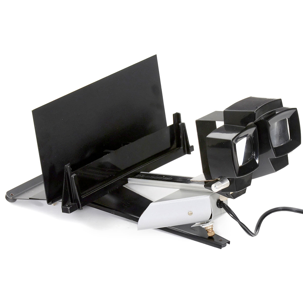 Stereo Optical Company Inc., Chicago. Stand and hand stereo viewer for cards of 9 x 18 cm, metal and plastic, with electric illumination 220 V, prismatic oculars, focusing by sliding of card holder, with original instruction manual.