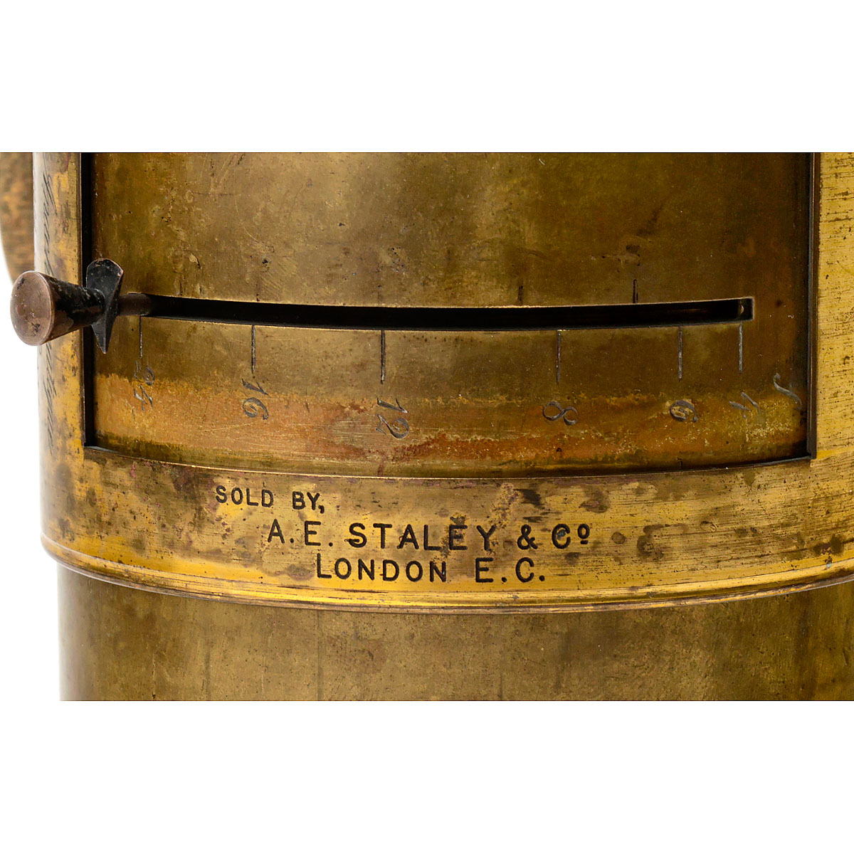 A soft focus lens for so-called artistic portraits built by Darlot, Paris, according to the ideas and design of two famous French "pictoralist" photographers: Puyo and Pulligny. Two symmetrical meniscus lenses with iris diaphragm made a more or less soft focus portrait in pictoralistic style. Height approx. 205 mm, focal length 16 in., front lens Ø approx. 78 mm. With lens cap "Sold by A.F. Staley & Co., London E.C.".