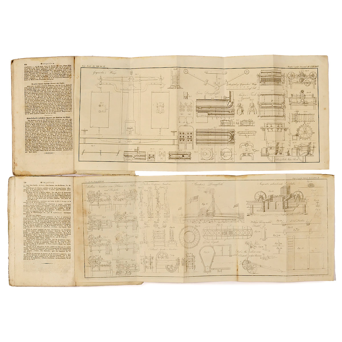 Between 1832 and 1840 (not complete), published by Johann Gottfried Dingler, with numerous technical innovations and patents, each with folded plate.
