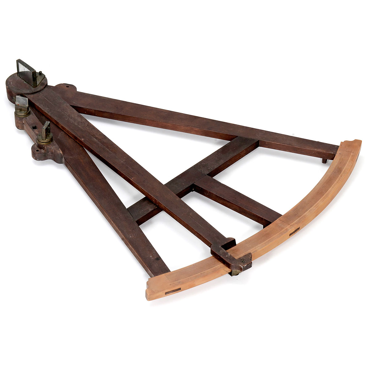 Mahogany frame, boxwood graduated arc (90–0°), 26-inch index arm, missing glass filters and peep sights.