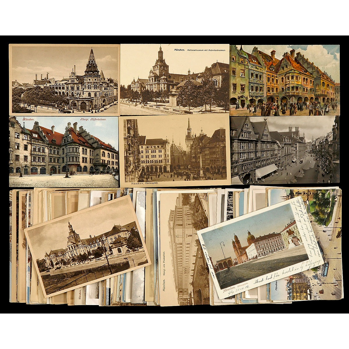 Approx. 180 picture postcards, motifs of Munich, c. 1900–1940, predominantly unused and not labeled, pictures and prints, color and black-and-white. – Have a look.