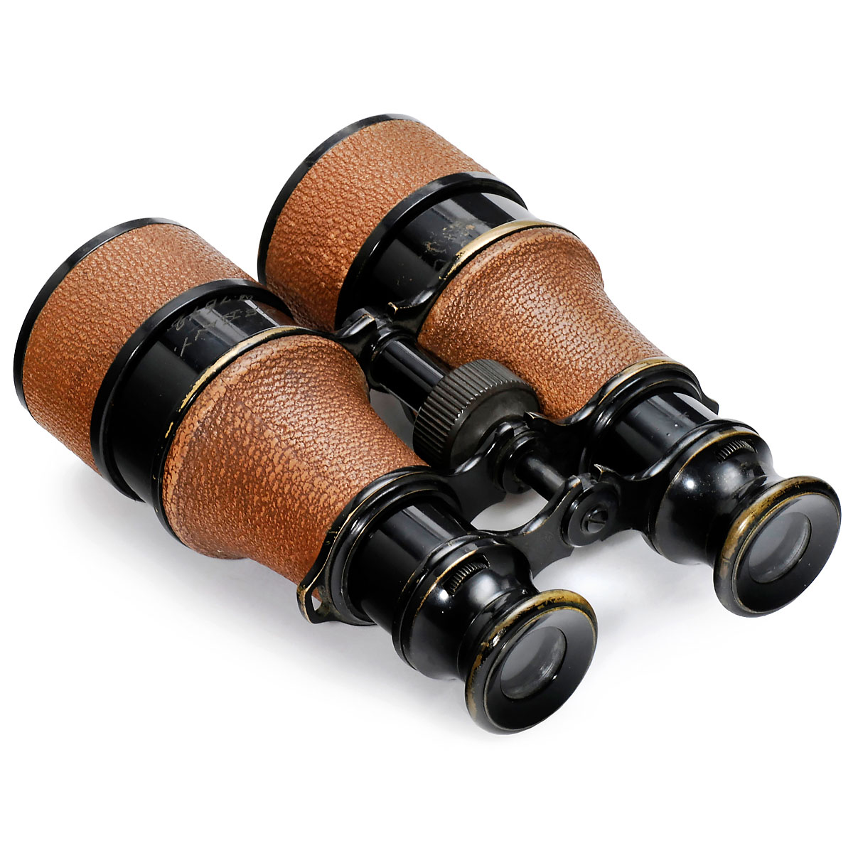Bausch & Lomb Optical Co., Rochester, N.Y. Engravings: "Night Glass Power 3" and "U.S. Navy No. 7672". Brown leather covering in excellent condition, ghost image.