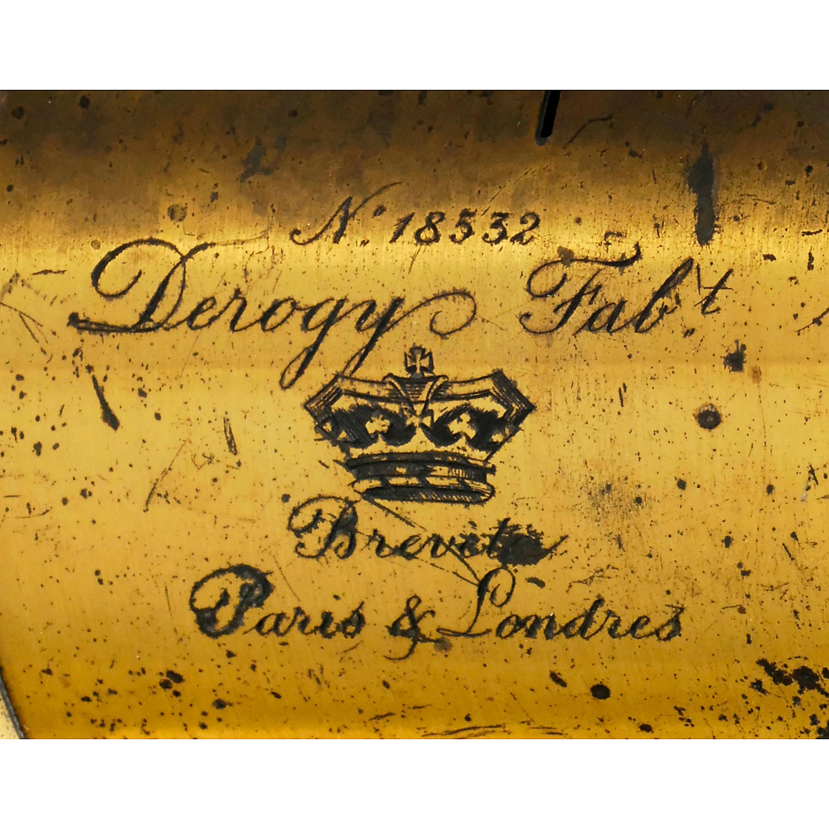 Gilles-Faller, Paris. Walnut body with brass fittings in excellent condition, red bellows with black corners, plate size 18 x 24 cm, focusing screen back. – Derogy Réctilinéare Aplanétique "No. 5" brass lens (no. 18532), for waterhouse stop. Focal plane roller-blind shutter (inoperative). – Very attractive studio camera with a classic lens! – Literature: Corrado D'Agostini, "Photographic Lenses of the 1800's in France", p. 164 (about the lens).