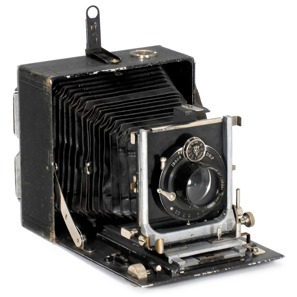 Linhof-Camera-Werk, Munich. Plate size 9 x 12 cm, body no. 83, with Hermagis Eidoscope 4,7/150 mm in Ibsor, focusing screen back.