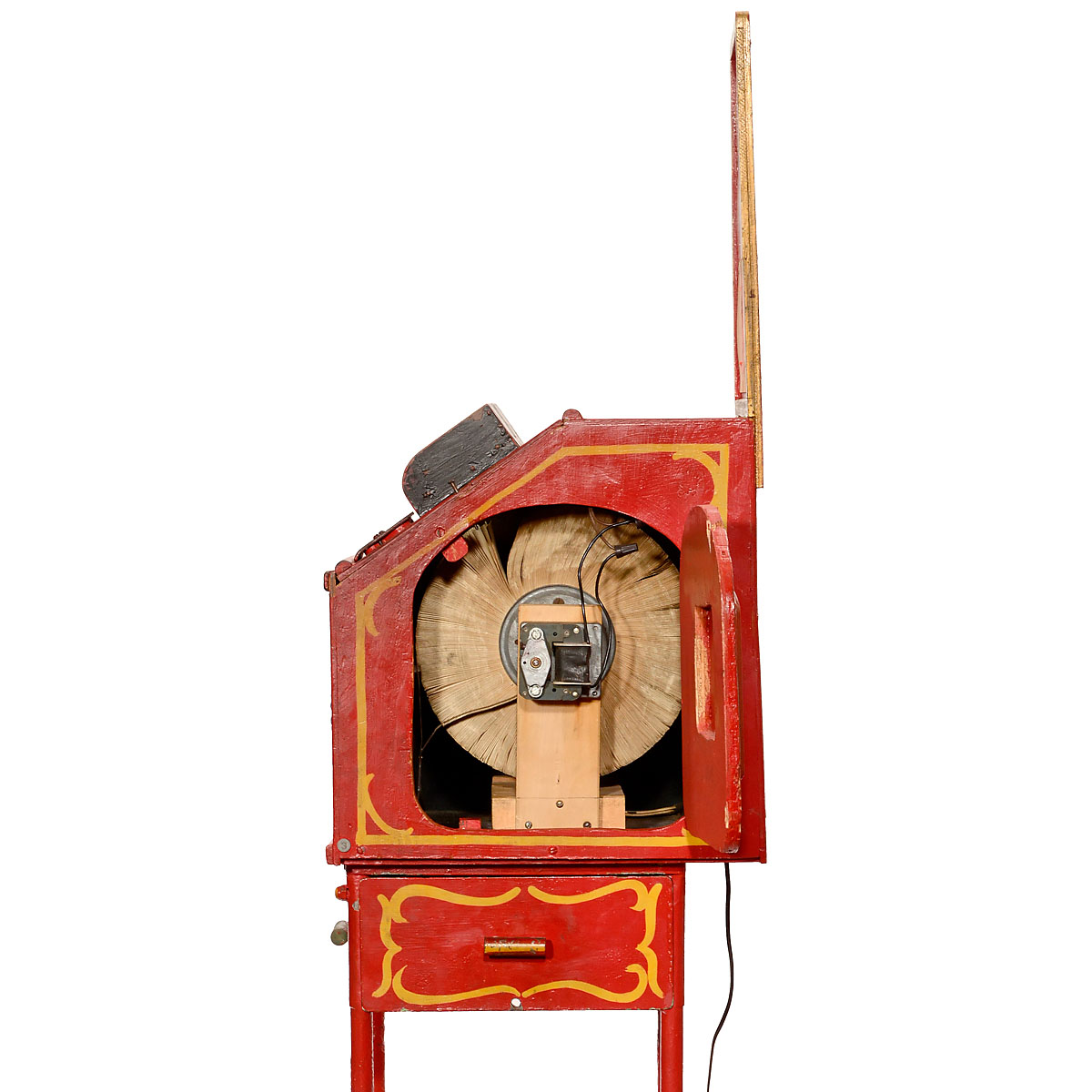 Unusual model with original Mutoscope reel. Ingenious stationary electric motor with automatic start as soon as the coin is slipped in. 110 V. Reel change after motor removal. – Extremely rare collector's piece and exhibition item!