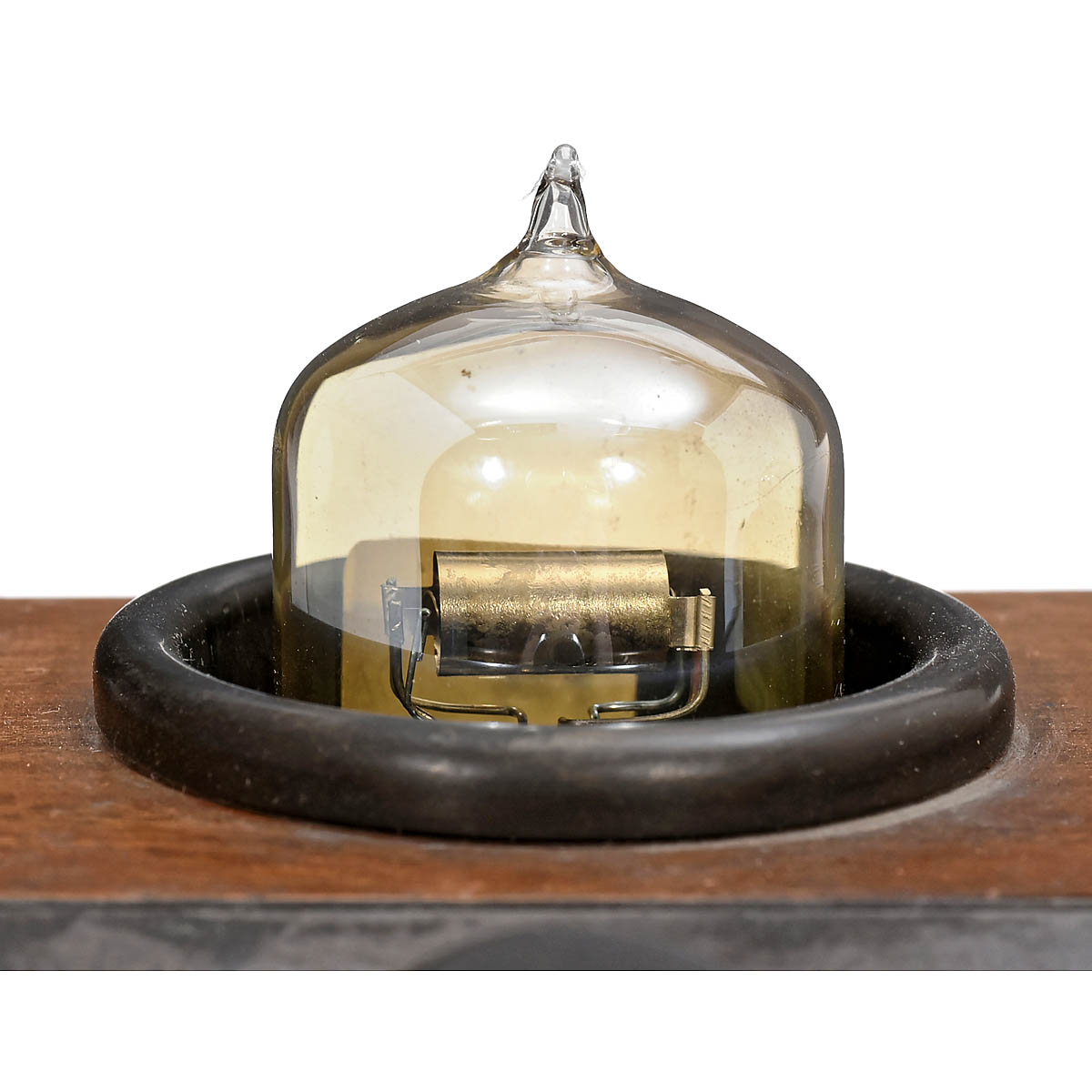 Using Telefunken patent, 2 visible Audion tubes, wooden case.