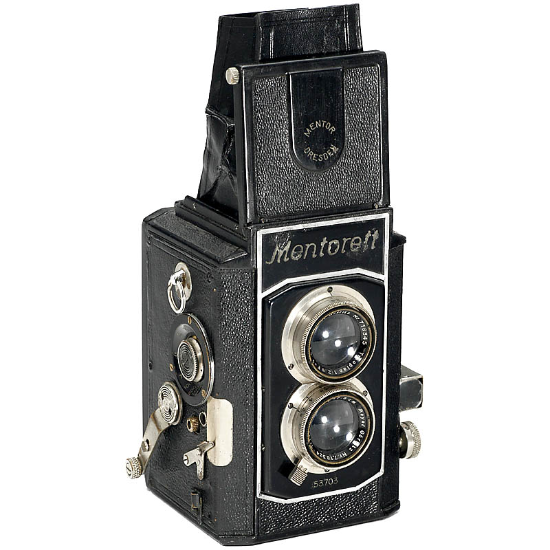 Mentorett双反, 德国 德累斯顿 Goltz & Breutmann产, No. 53703, Trioplan 2.9/7.5cm, 帘幕式快门, 1/15-1/600, 上弦, 卷片, 快门由同一个扳手操作, 非常罕见!, 约1936