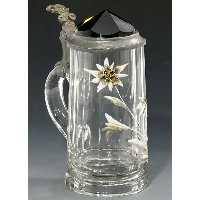 带高山火绒草的玻璃啤酒杯 1900年前后