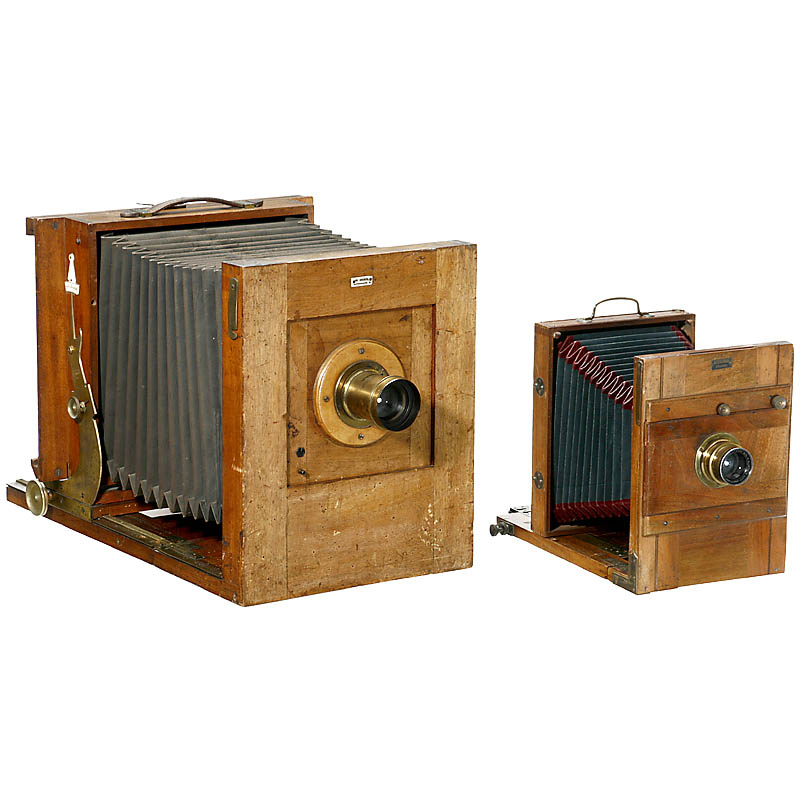 2,大型外景相机24x24cm,1875-85,高级木制,带黄铜附件,巴塞尔Suter黄铜镜头Rapid Aplanat No.2 F.5,虹膜光圈,内置快门,对焦屏后背,制造商AD. GOECKER,Kjóbenhavn