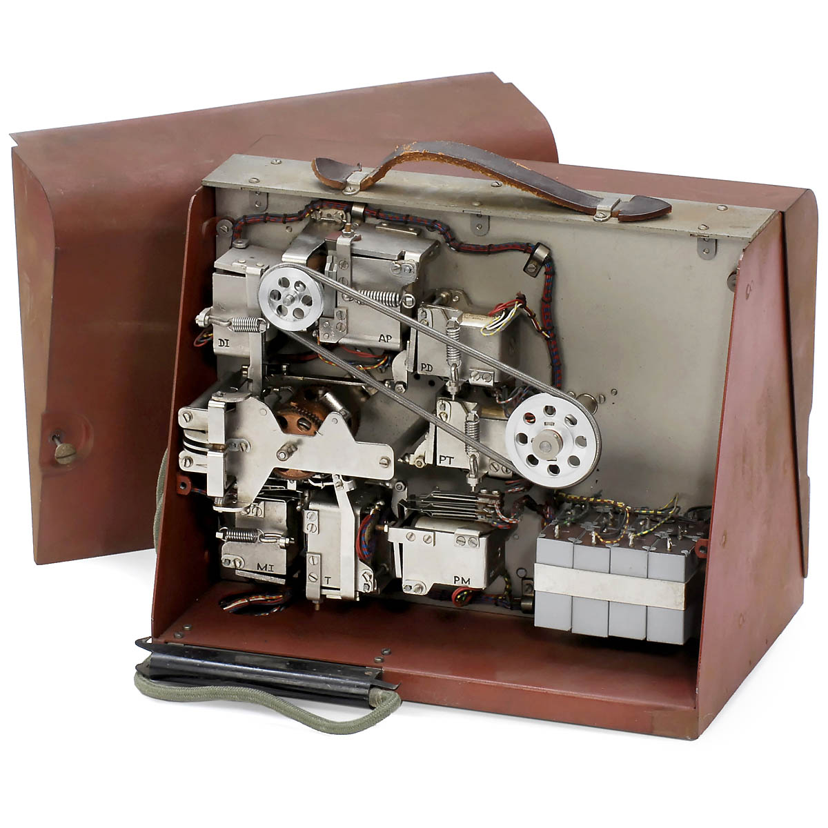 Pulse dial recorder, made by Bell Telephone AG, Belgium, electro-mechanical, with paper strip printer, in metal case.