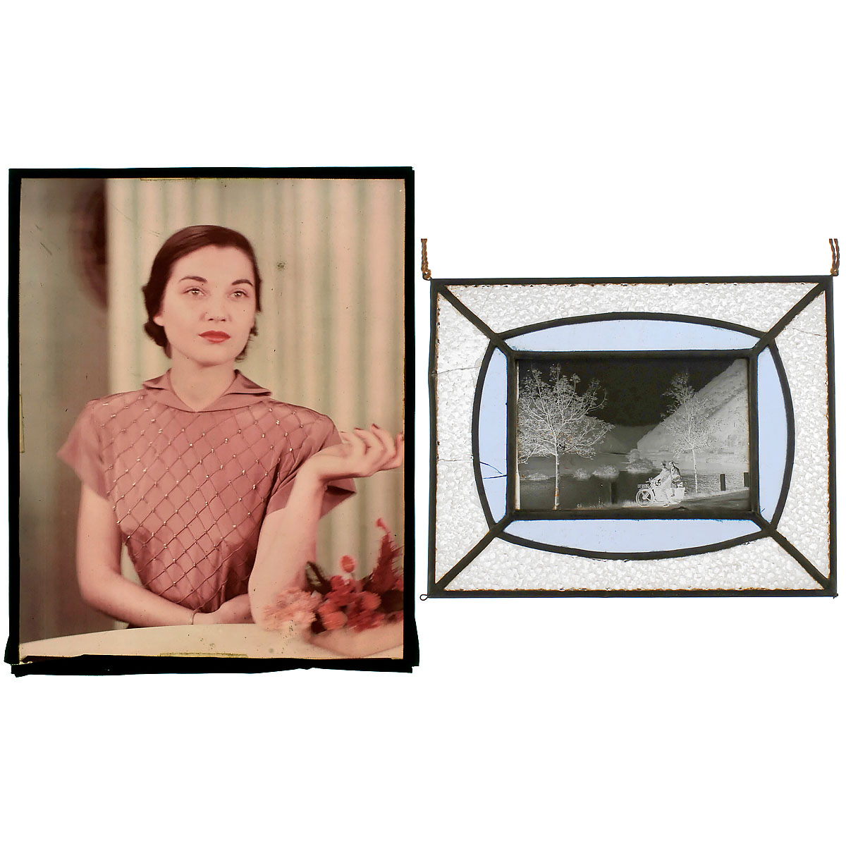 Size 20 x 25 cm (7 4/5 x 10 in.), portrait of a lady, similar to W.R. Hess principle. – In addition: Negative 10 x 15 cm, in leaded-glass frame.