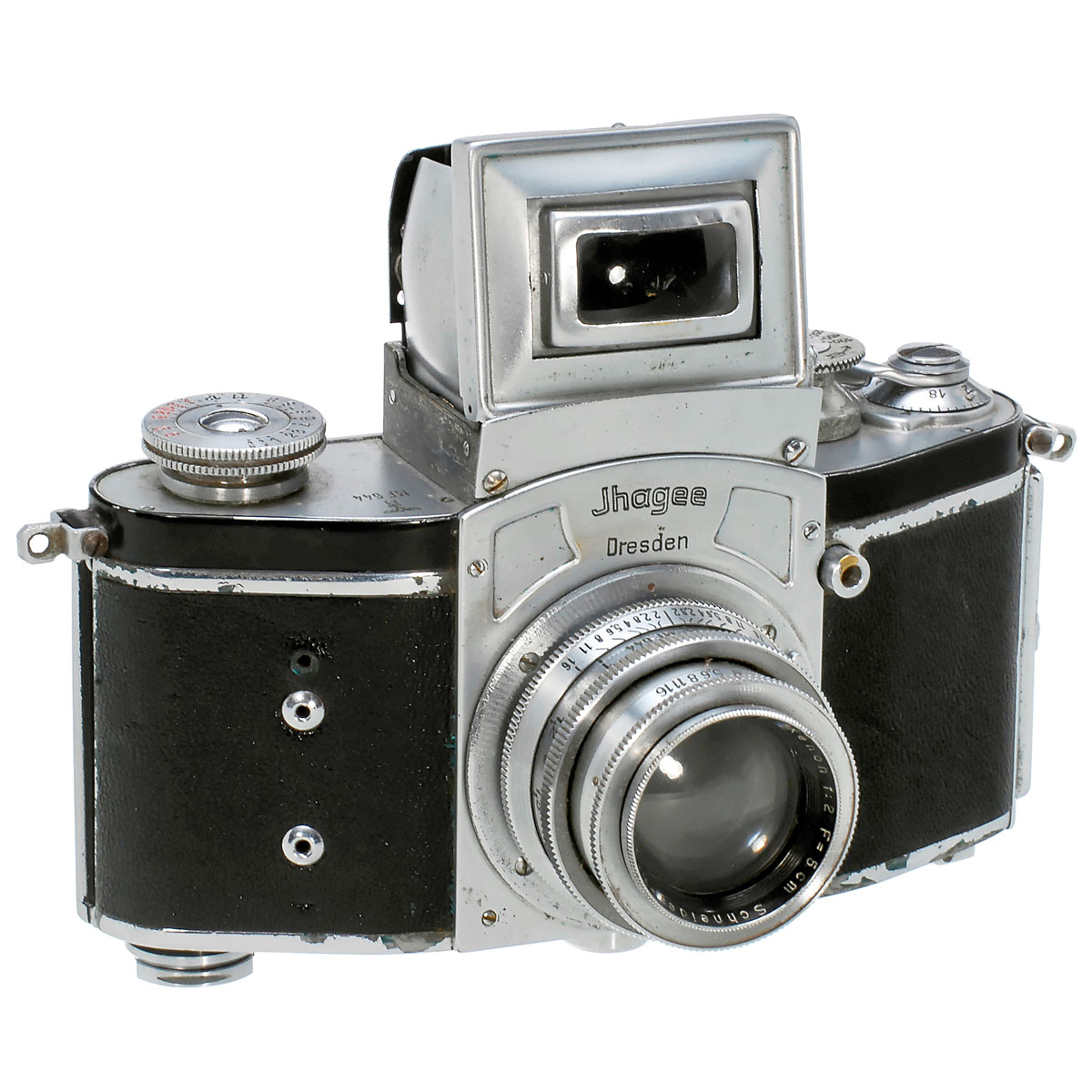 Ihagee, Dresden. No. 612106, type 4. Xenon 2/5 cm, no. 1543179, body and lens with engraving: "MF 644" and National Socialist emblem, with case. – Rare!