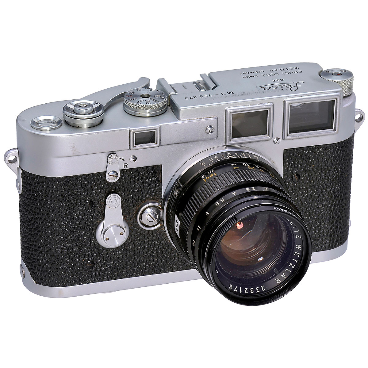 Leitz, Wetzlar. No. 759273, double-stroke advance, no field-frame selector. Vulcanite on back door brittle. Summicron 2/50 mm, no. 2332178, six-element construction, with UV-A filter.
