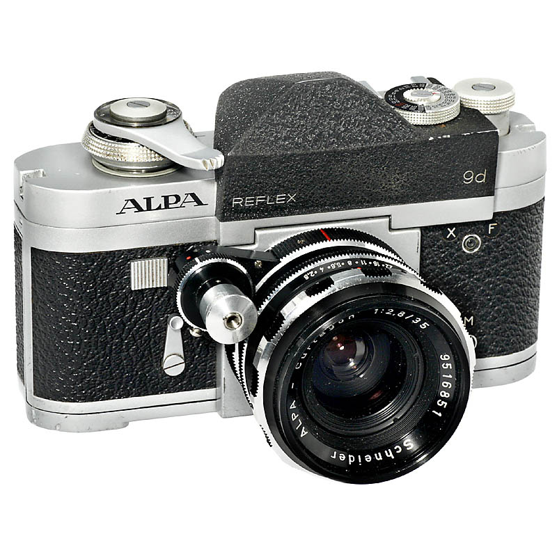 Alpa Reflex 9d型, 1965, No. 52016, chrome, 带 Alpa-Curtagon 2.8/35mm 镜头, No. 9516851, 测光表未经测试, 其余成色极好