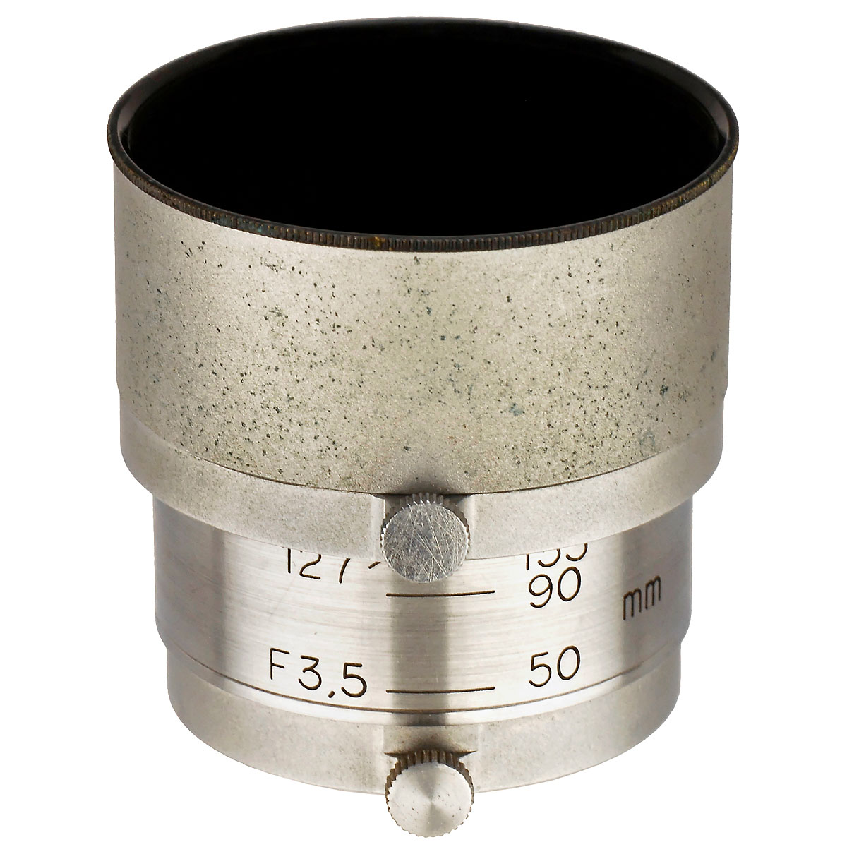 E. Leitz, New York. Adjustable A36 lens hood for focal lengths 50 mm to 135 mm, chrome/grey finish. – The highly sought-after New York version.