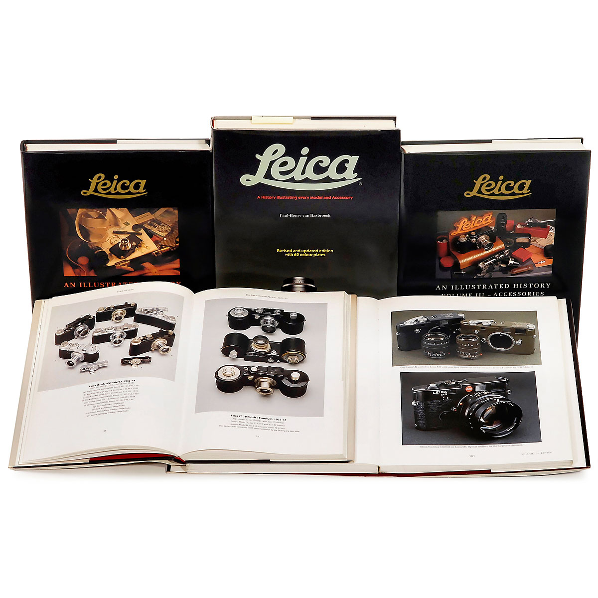 Leica – An Illustrated History: 1) Volume I – Cameras, 1993. – 2) Volume II – Lenses, 1994, back of the book lose. – 3) Volume III – Accessories, 1998. – In addition: 2 books by Paul-Henry van Hasbroeck: "Leica – A History illustrating every Model and Accessory", 1983, and "Leica in Colour", 1998. – Sought-after Leica books!