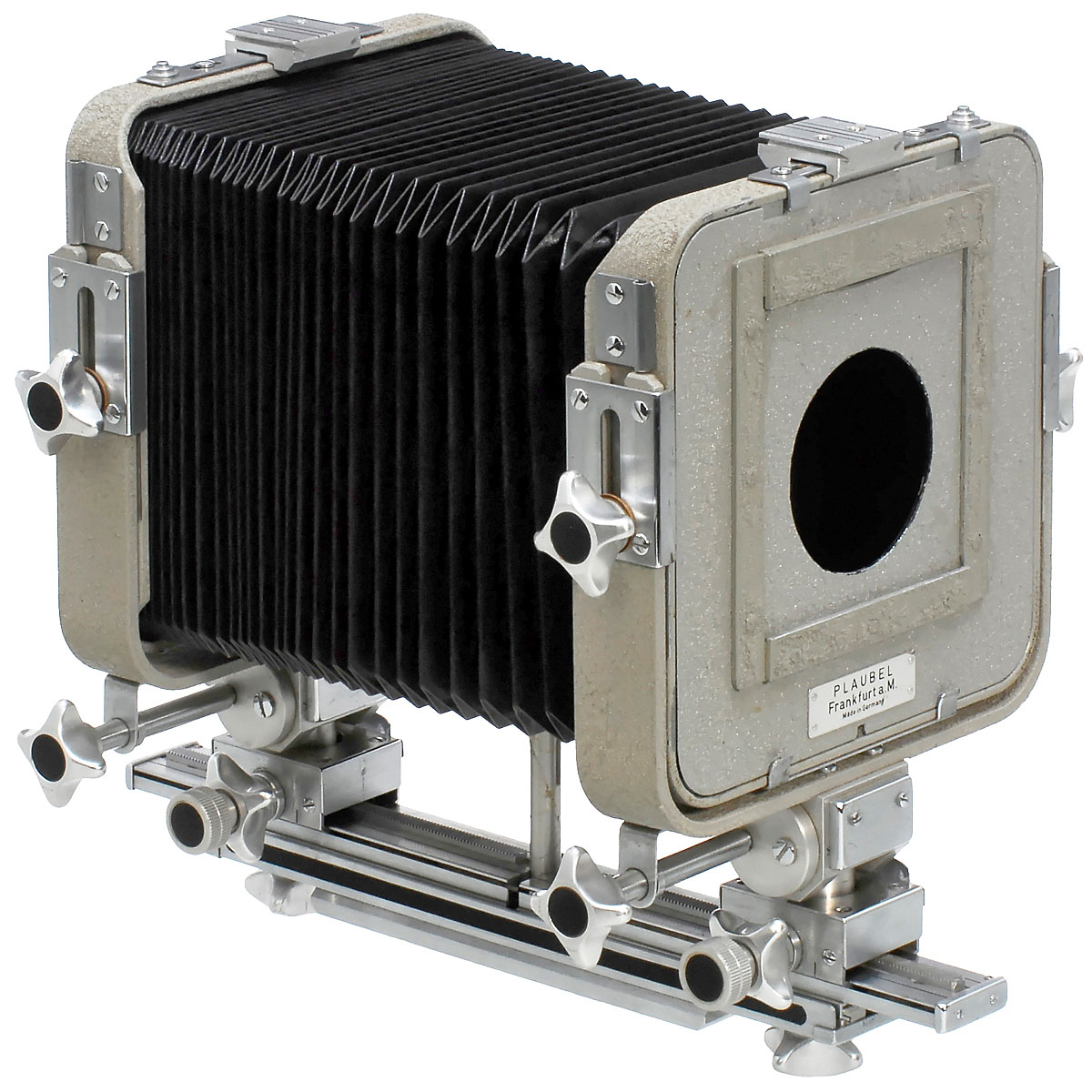 Plaubel, Frankfurt. No. 945, professional camera, ground-glass back, back SG 6/345 9 x 9 cm, 3 lens panels, 9 film sheet holders, sturdy case. Foam strips brittle.