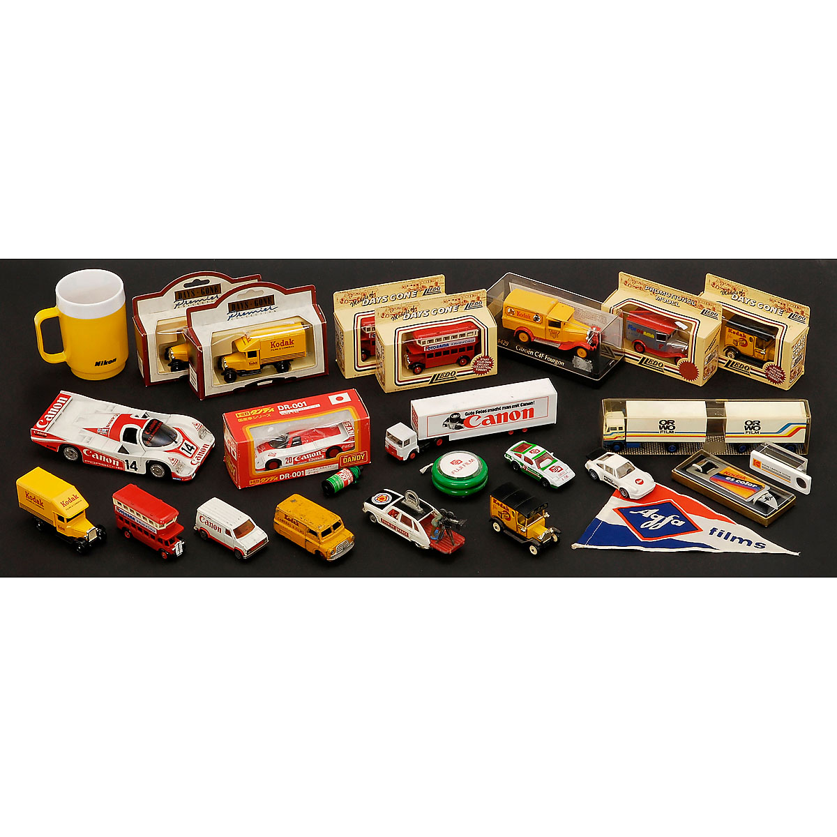 Various manufacturers, partly with original box, 1980s and earlier. – In addition: Other advertising material from Agfa, Fujifilm, Kodak and Nikon.