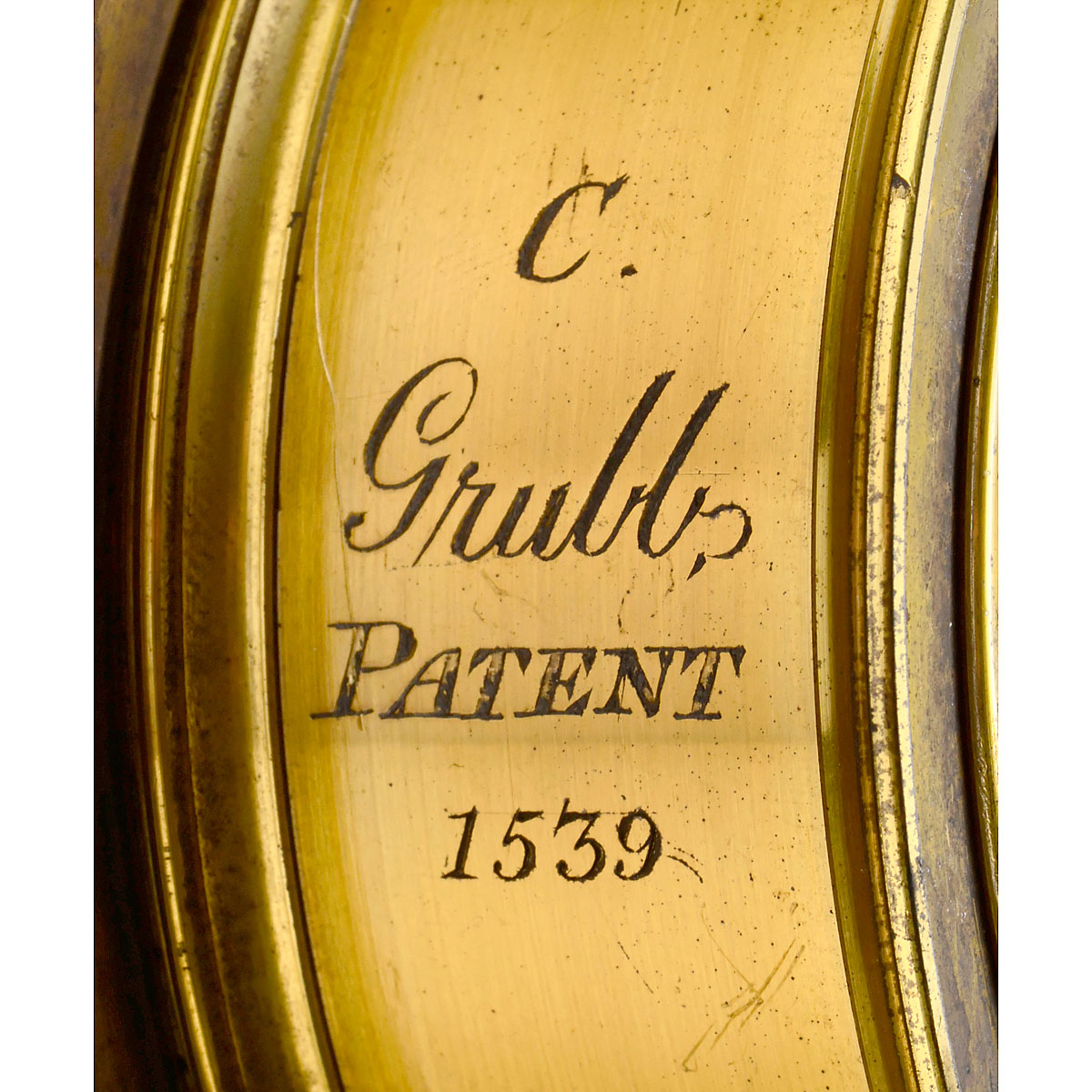 No. 1539. Th. Grubb (1801–1878) of Dublin was an important, practical theorist who did not earn the recognition that he deserved. Brass lens with collapsible front tube and attachment for washer stops. Focal length approx. 43 cm. With additional adapter ring for expanding the screw diameter from 90 to 118 mm. Very attractive piece!