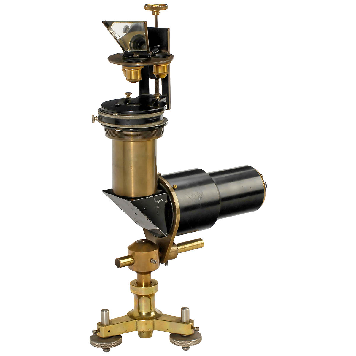 Heinrich Ernemann AG, Dresden. Brass, 3 objective lenses in turret, mirror damaged, height 16 ½ in.