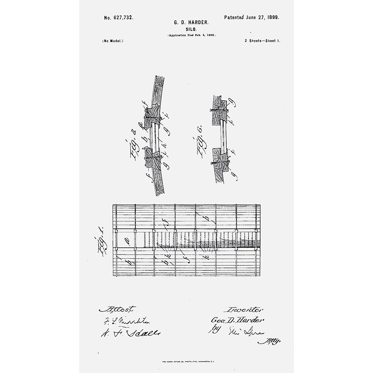 Original U.S. patent or salesman's sample. Made by Puffer Hubbard Mfg. Co., Minneapolis, MN/USA. Wood and metal, with maker's and patent plate, height: 16 in. With 3 U.S. patent copies from 1899, 1907 and 1912, and a postcard illustration of the completed silo dated 1912. - An absolutely unique and spectacular collector's item and exhibition piece!