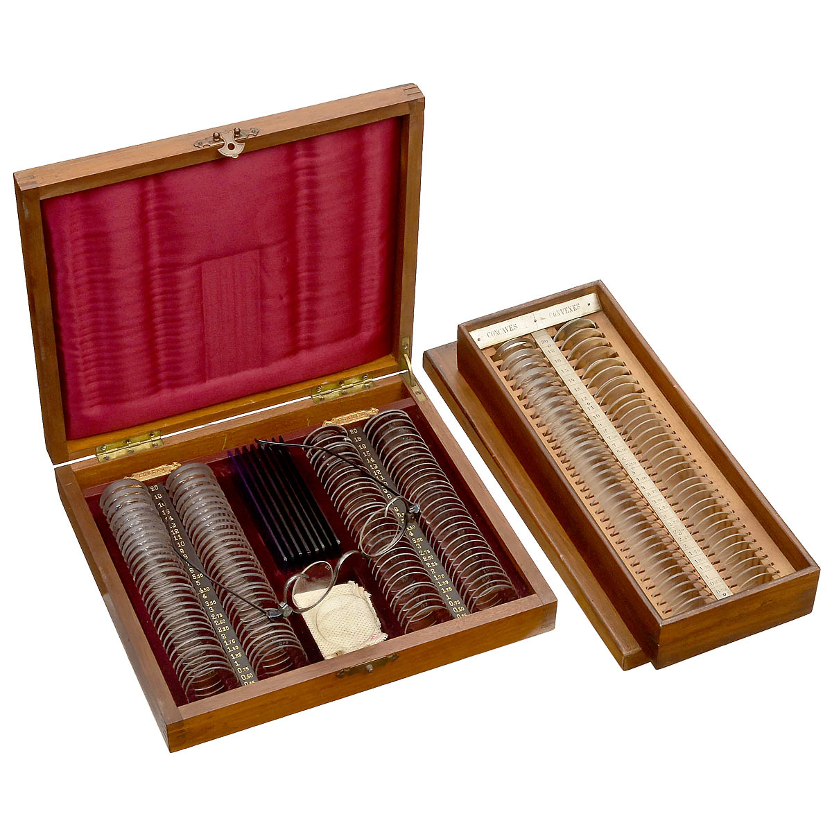 2 Ophthalmological Trial Lens Set in Mahogany Cases, c. 1925