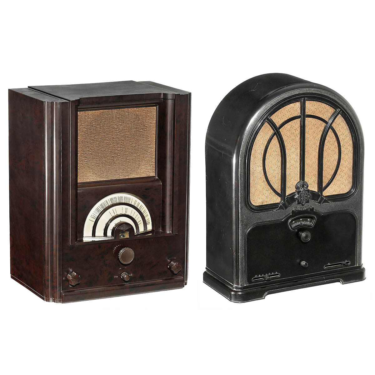 1) Telefunken model 250, by Radiotechna, Prague. 3 valves, MW + LW, mains-operated. - And: 2) Seibt Roland 33L, 4 valves, MW, LW + SW, mains-operated. - Both bakelite cases in good condition.