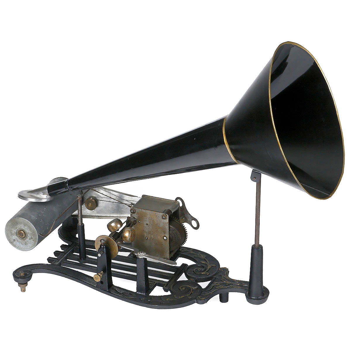 Presumably Germany, cast-iron lyra-form base, aluminum reproducer with sapphire tip, working spring-motor and later horn.