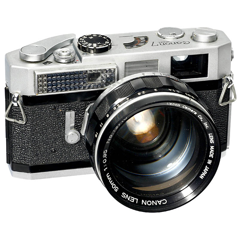 Canon 7, 1961, No. 825770, 带 Canon 0.95/50mm 镜头, No. 13710, 快门工作正常, 帘幕有褶皱.