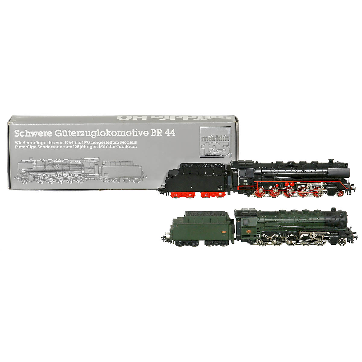 1) 3046, French locomotive series 150X SNCF, cast metal, plastic tender. - And: 2) 3108, series 44 DB, special edition "125 years Märklin anniversary", in original box.