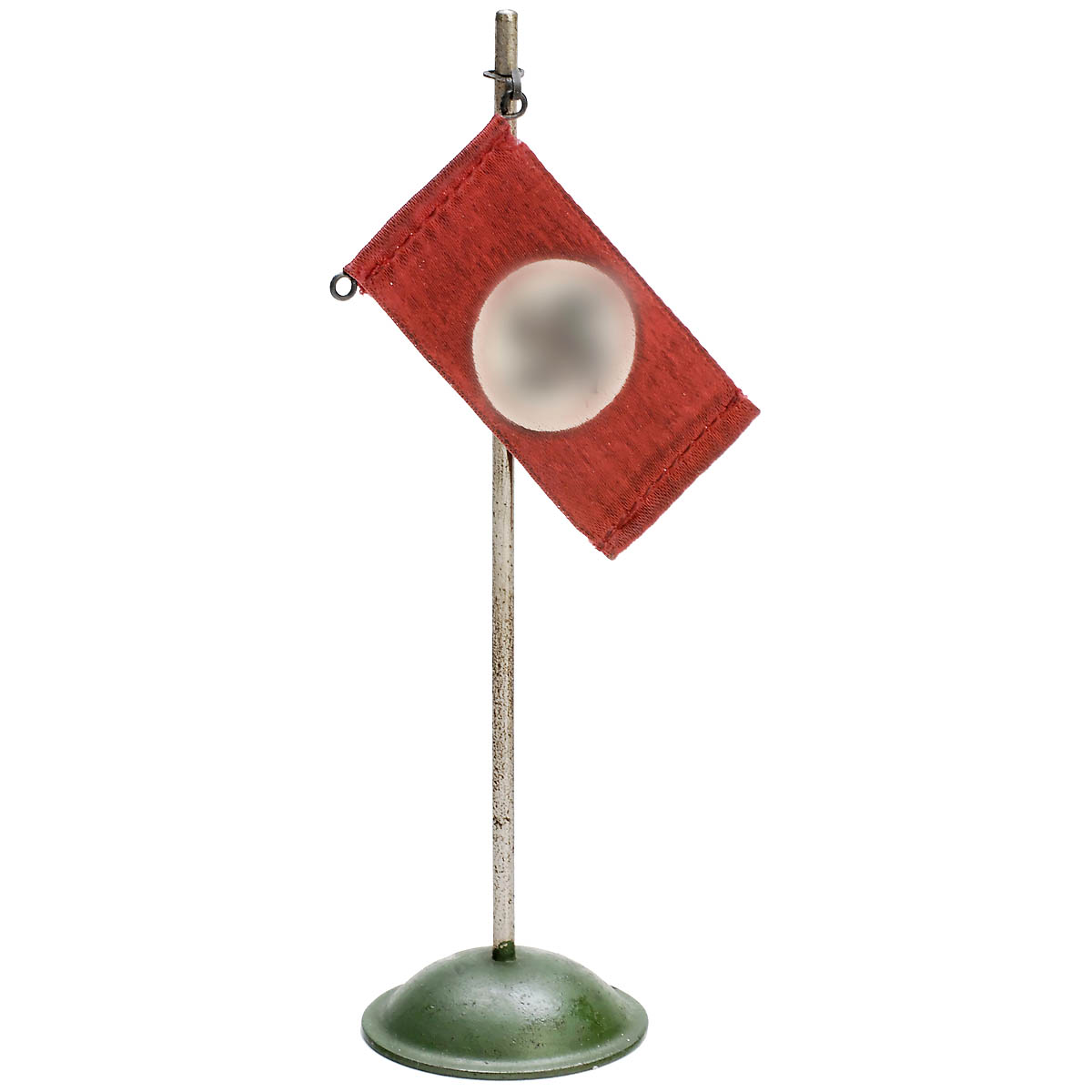 Nickeled mast, green base, base stamped "Germany", swastika on banner, height 4 4/5 in.