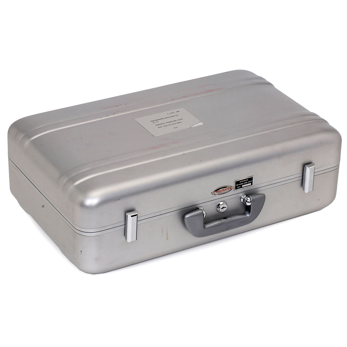 Leitz Canada and Wetzlar. Aluminum case marked: "E. Leitz Inc. Photographic Accessory Kit LE-11 Contract: F42600 68C-2410 NSN: 6780-00-069-8866 U.S." - Accessories: 1) Leitz Canada Telyt 4,8/280 mm, no. 2217074. - 2) Visoflex III with viewfinder magnifier 90°. - 3) Bellows II, extension ring OUBIO (16466). - 4) Extension ring 16462, tube OTSRO (16472), OTVXO vertical viewfinder 5x (for Visoflex III), table tripod, ball head, 2 filters (UVa + OR). - And: 5) Special flash "Honeywell Strobonar/400". - Presumably one of only 2 cases made for U.S. Army! - Unused!