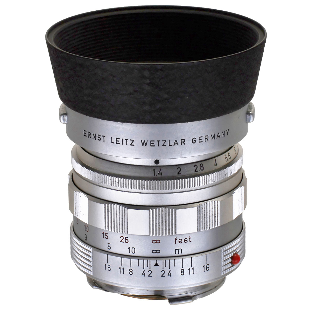 Leitz, Wetzlar. No. 2028218, chrome, coarse knurling. Focusing stiff, otherwise like new. With UVa filter, lens hood 12521G and container.
