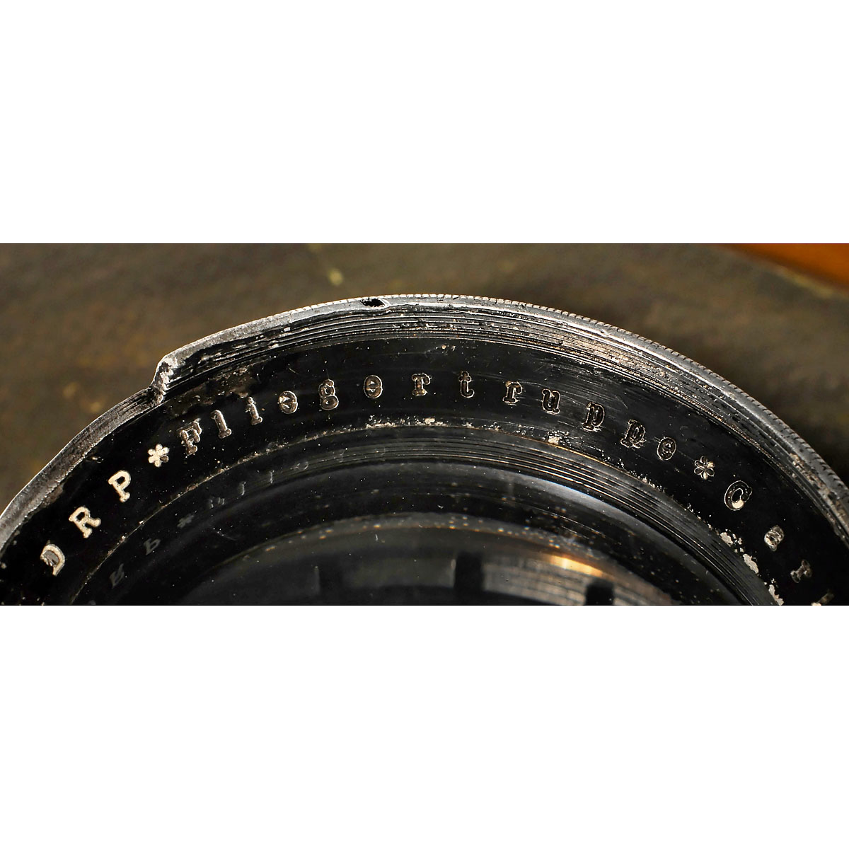 Ica AG, Dresden. Light aircraft camera, wood and metal combination with linen sheet coat and olive-green paint film, focal plane shutter (working), viewfinder missing, magazine on back. Lens: 4,5/25 cm, no. 301531, engraving: "Fliegertruppen". Instruction book: First lieutenant i.d.R Alfred Thiel, "Lehrbehelf - Photographie aus dem Flugzeuge für Beobachter-Offiziere", 1916. - Only a handful produced. - Rare!