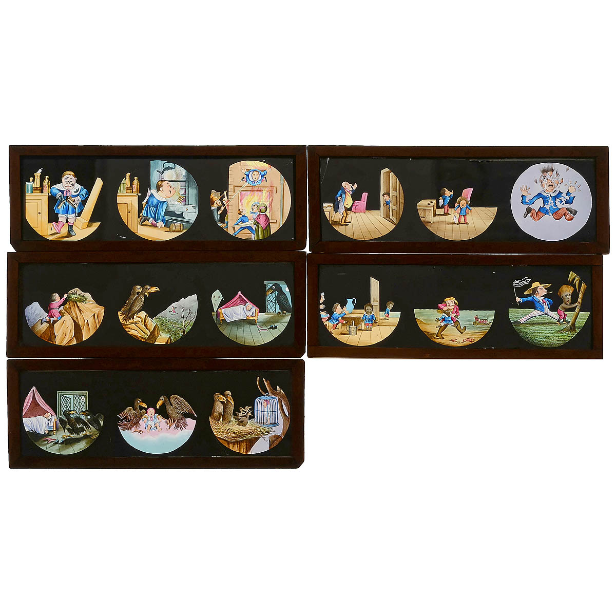 5 Magic Lantern Strips by Newton, London, c. 1890