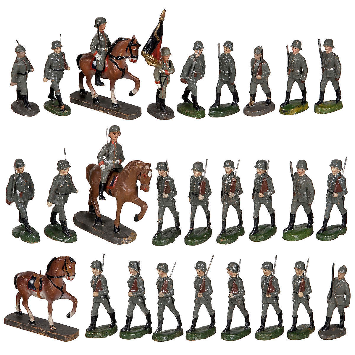 Composition figures, 3 in., including 2 riders and a banner-bearer.