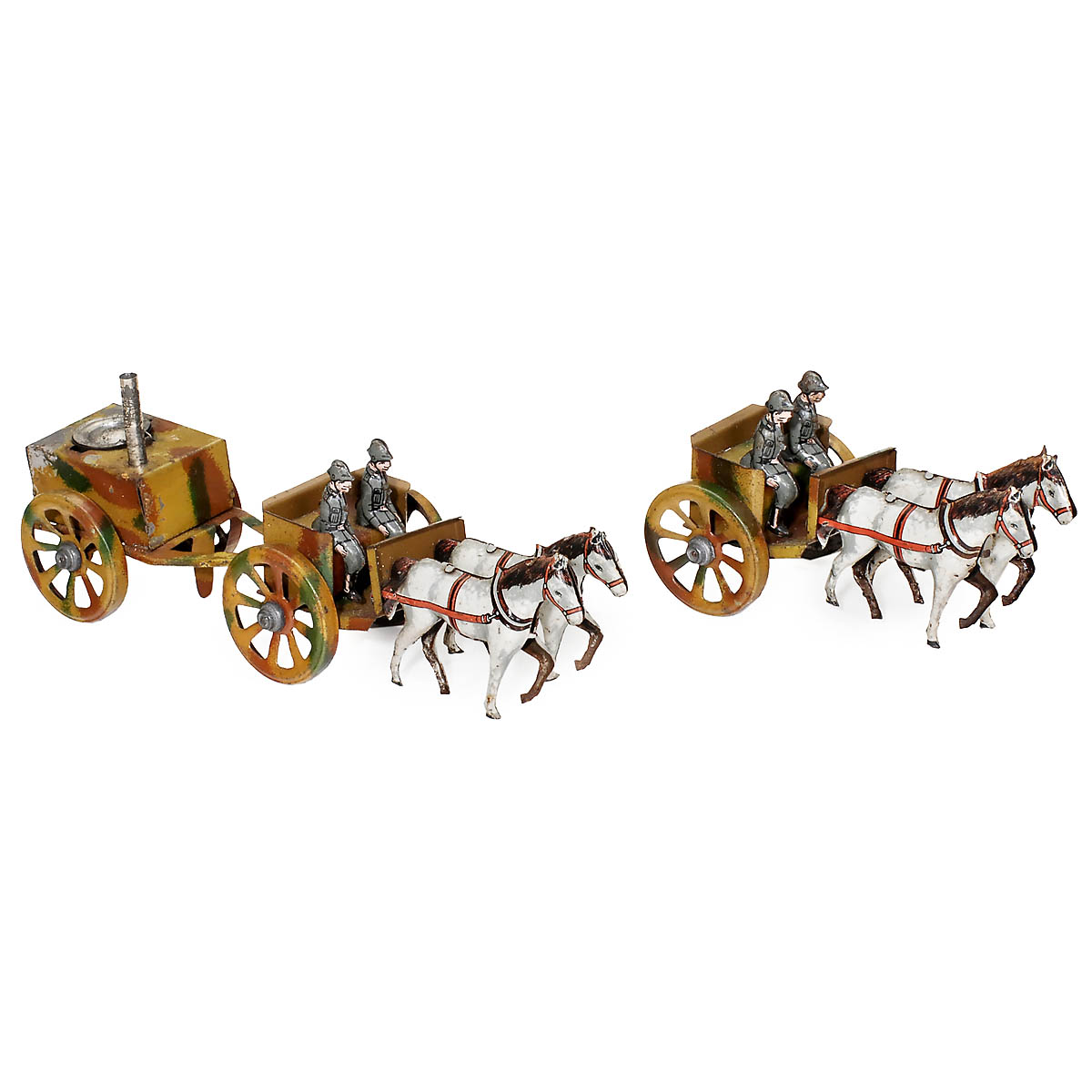 2 Penny Toys: Military Horse-Drawn Carriages, c. 1920