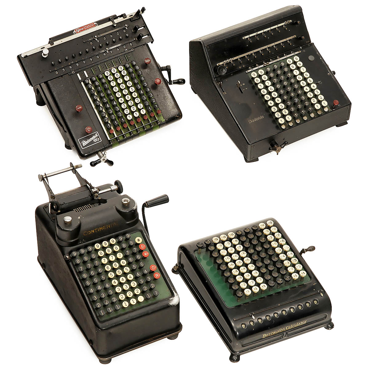 1) "Continental", with printer. - 2) "Rheinmetall". - 3) "Badenia". - And: 4) "Burroughs". - All machines in working order!