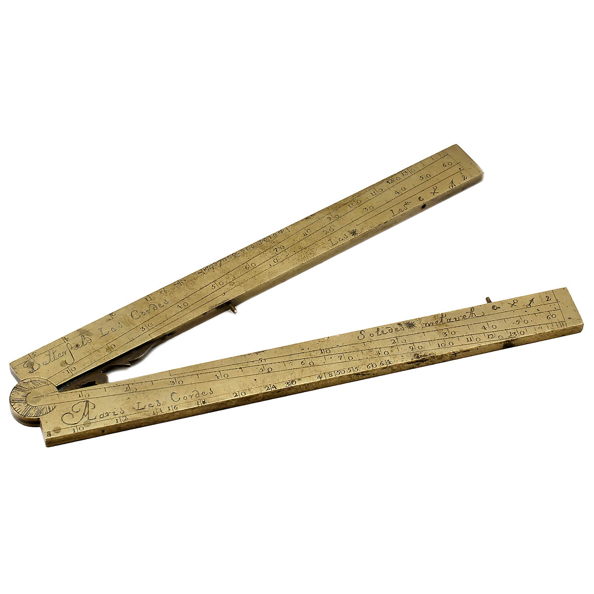 Paris, calibrations on the signed face: "Les Cordes", "Solides" and "Les Metaux"; on the other face: "Les Parties Egales" and "Les Polygones". Length 6 9/10 in., overall 13 2/5 in.