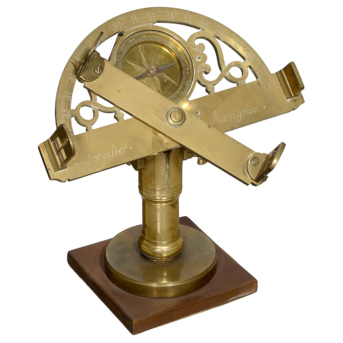 Signed: "Cartailier Aavignon", brass, 1 7/10 in., compass half circle Ø 6 1/10 in., rotating sight, on ball-and-socket mount.