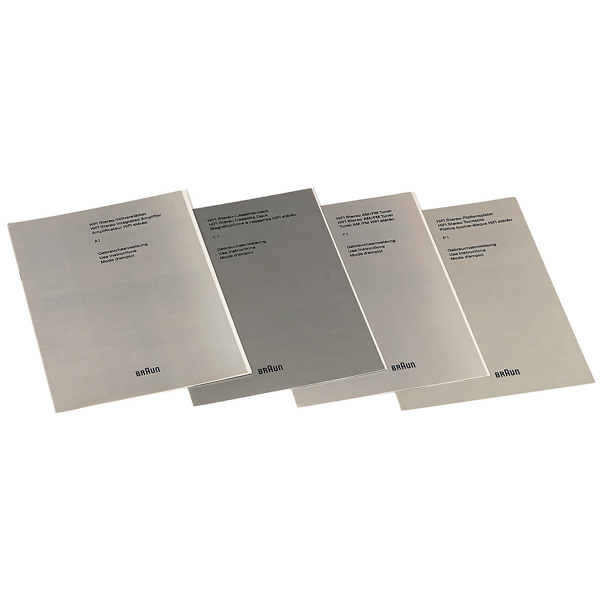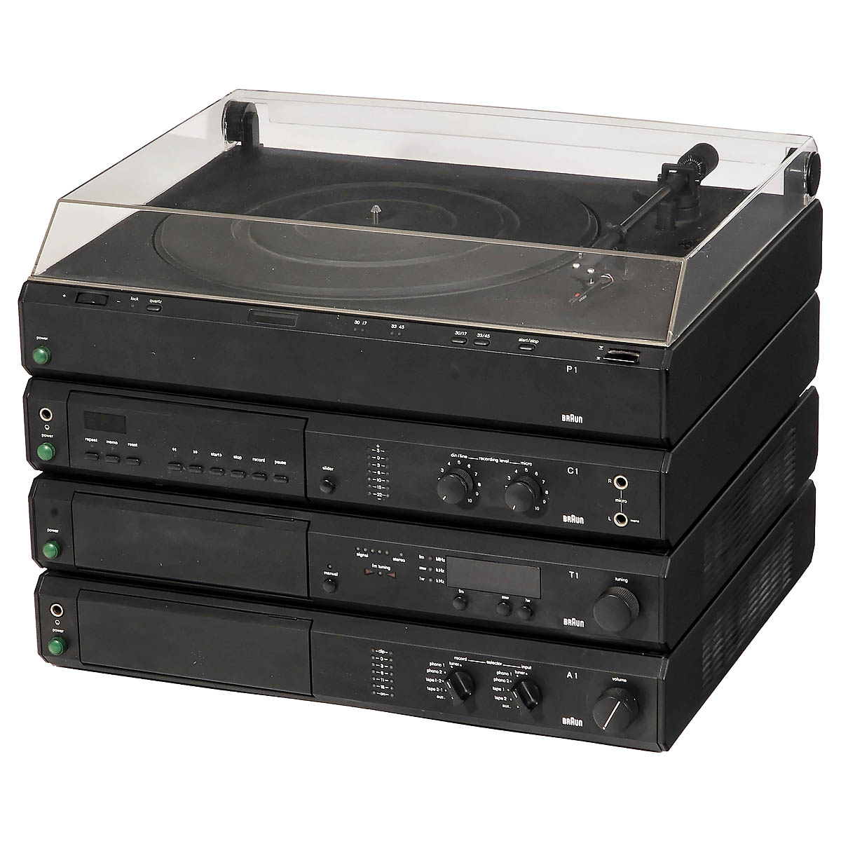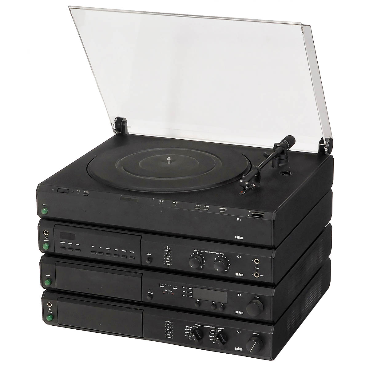 Designed by Dieter Rams and exhibited in the Museum of Modern Art. Consisting of integrated amplifier A1, AM/FM tuner T1, cassette deck C1 and turntable P1. Very good optical and technical condition. With 4 German manuals.