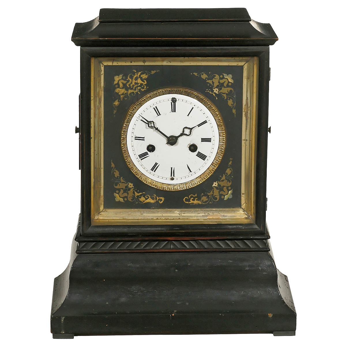 Brass plate movement, with pendulum, strike on spiral gong, enameled dial and gilt decoration, working (not guaranteed), height 13 in.