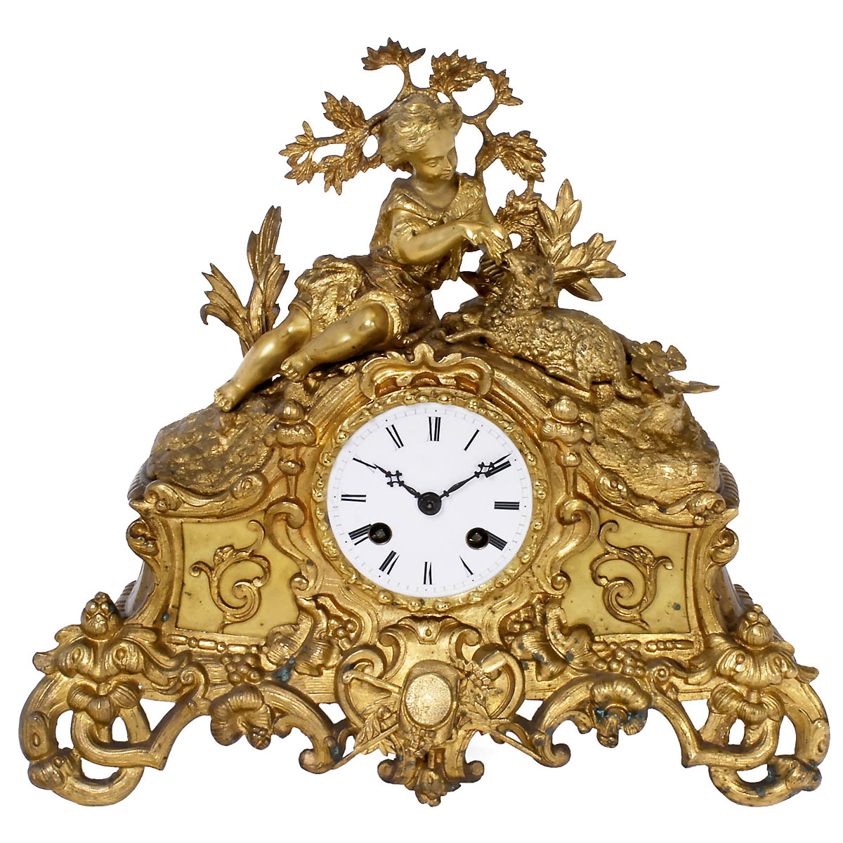 Gilt-bronze, movement marked "B&C, Paris", serial no. 4403 on movement, pendulum and case, height 11 3/5 in., with key, working.
