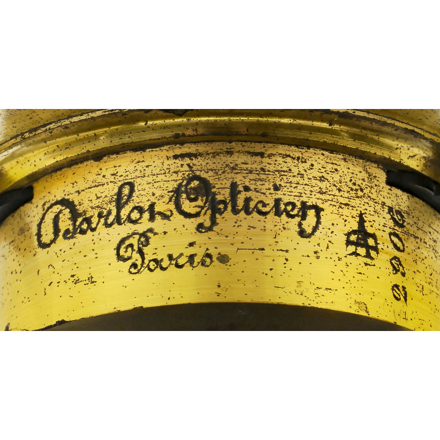 Darlot, Opticien Paris AD. No. 2906, based on Harrison's "Globe" lens. Rare wide-angle lens of approx. 90° field angle, 3 swing-in diaphragms, approx. 20 cm focal length, height 2 in., Ø 3 1/6 in. Classic wide-angle lens. - Literature: Corrado D'Agostini, "Photographic Lenses of the 1800s in France", p. 143 (above right).