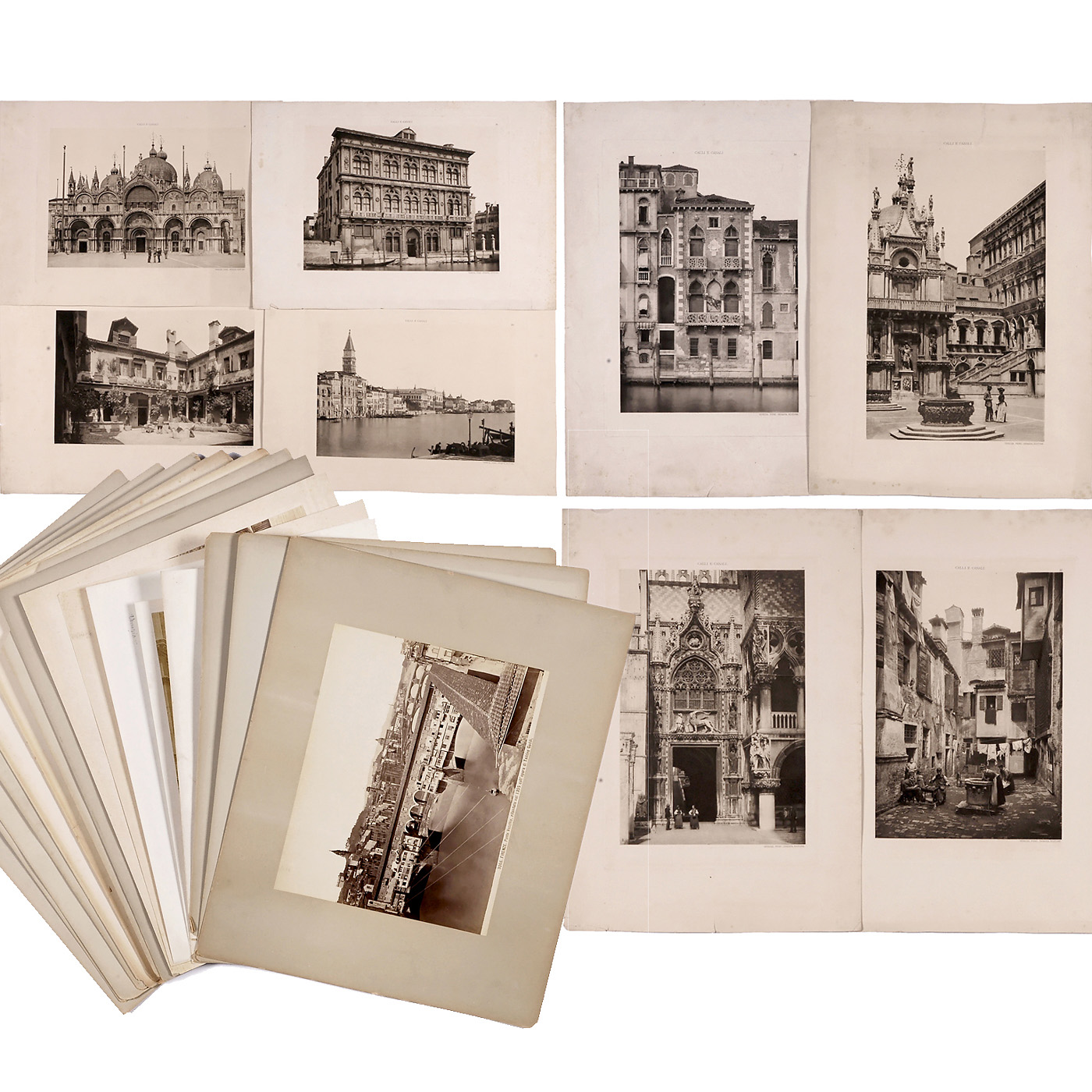 8 vintage prints of Venice, size approx. 9 x 13 1/3 in., titled. (2/-) - And: 16 assorted vintage prints of Italy, c. 1880-1900, size approx. 7 4/5 x 10 in, various publishers. (2-3/-)
