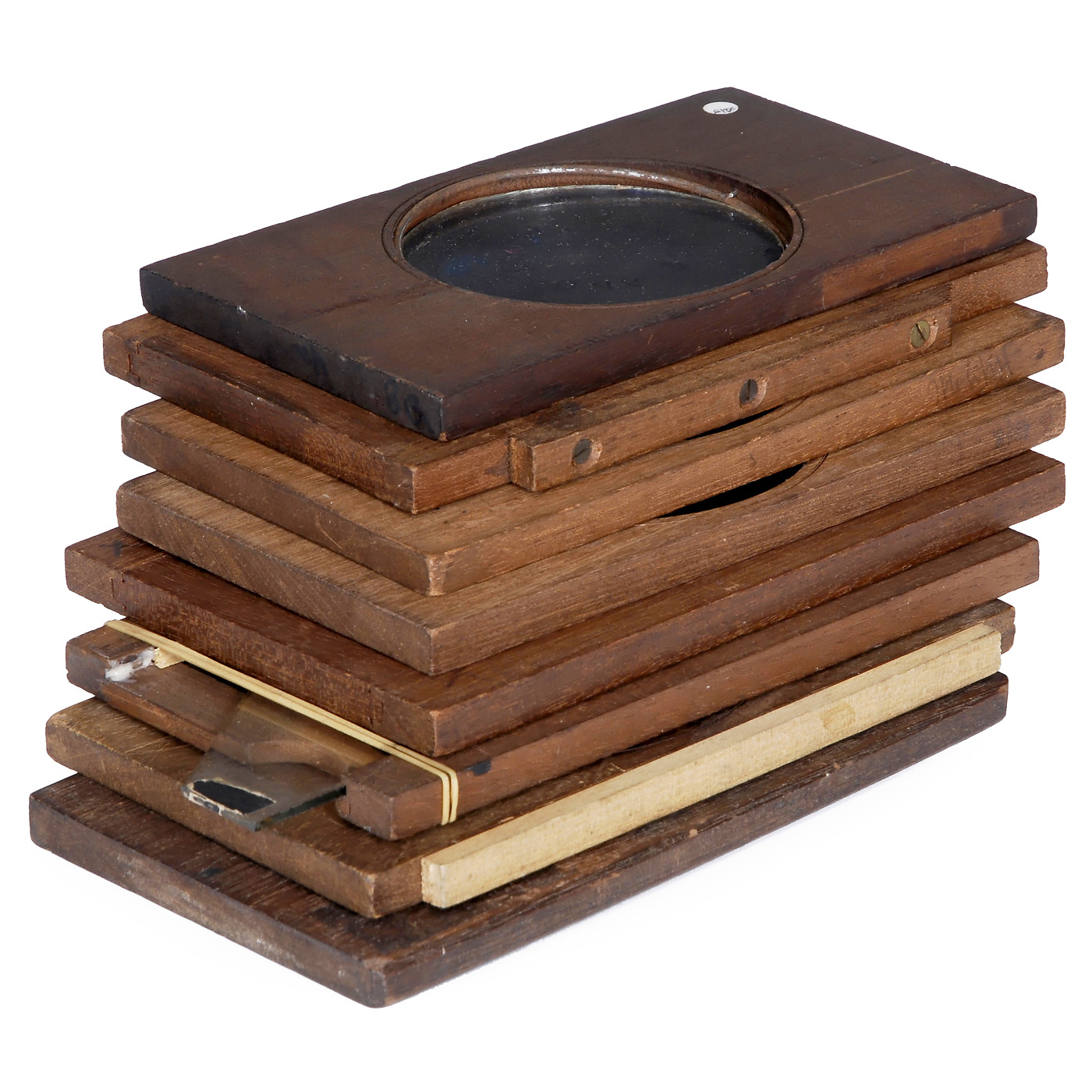 England. Wood frame, sizes: 4 x 7 in. and 4 ½ x 7 in. Titles: 1 x "Welcome", 1 x "Silence!", 1 x "Adieu", 1 x "Peace and Plenty", 1 x "A Happy New Year" und 3 x "Good Night" (various). One glass slightly damaged and one slide with mechanism (single-slipping slide).