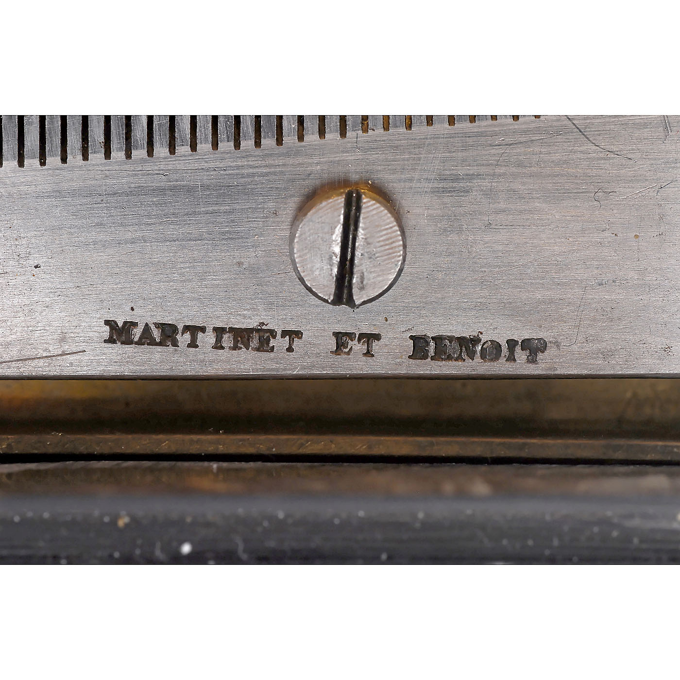 No. 3102, playing three airs including "Dame Blanche", with 72 teeth in fine single-piece comb (complete) stamped "MARTINET ET BENOIT", with seven brass bass tuning weights, in tortoiseshell case with monogrammed silver cartouche on lid, wd. 4 in. (10 cm), cylinder 2 ¾ in. (7 cm), movement in good restored playing condition, case lacking inner horn cover, base split in several places. - According to research by Goldhoorn, the firm of Martinet et Benoit was active in the horological trade during the first half of the 19th century. Patrizzi's "Dictionnaire des Horloges Genevois" lists Benoit et Martinet as "Établisseurs" (manufacturers) at No. 10 Rue Neuve in Geneva in 1828. Goldhoorn concludes that Martinet was the business man and Benoit the maker. - In addition to watches, the firm also produced a small number of high-quality musical boxes. At present only some dozen snuff boxes and four cartel musical boxes by Martinet et Benoit have been identified. Serial numbers in the same digit range as this example (3725, 3830 and 3948) date from the 1830s. - Literature: Luuk Goldhoorn, "Martinet & Benoit" in: "Music Box Journal", vol. 25/4, pp. 137-144; Chris Fynes, "A Martinet et Benoit Overture Cylinder Box" in: "Mechanical Music World", April 2016. - A rare musical box of early Geneva production.