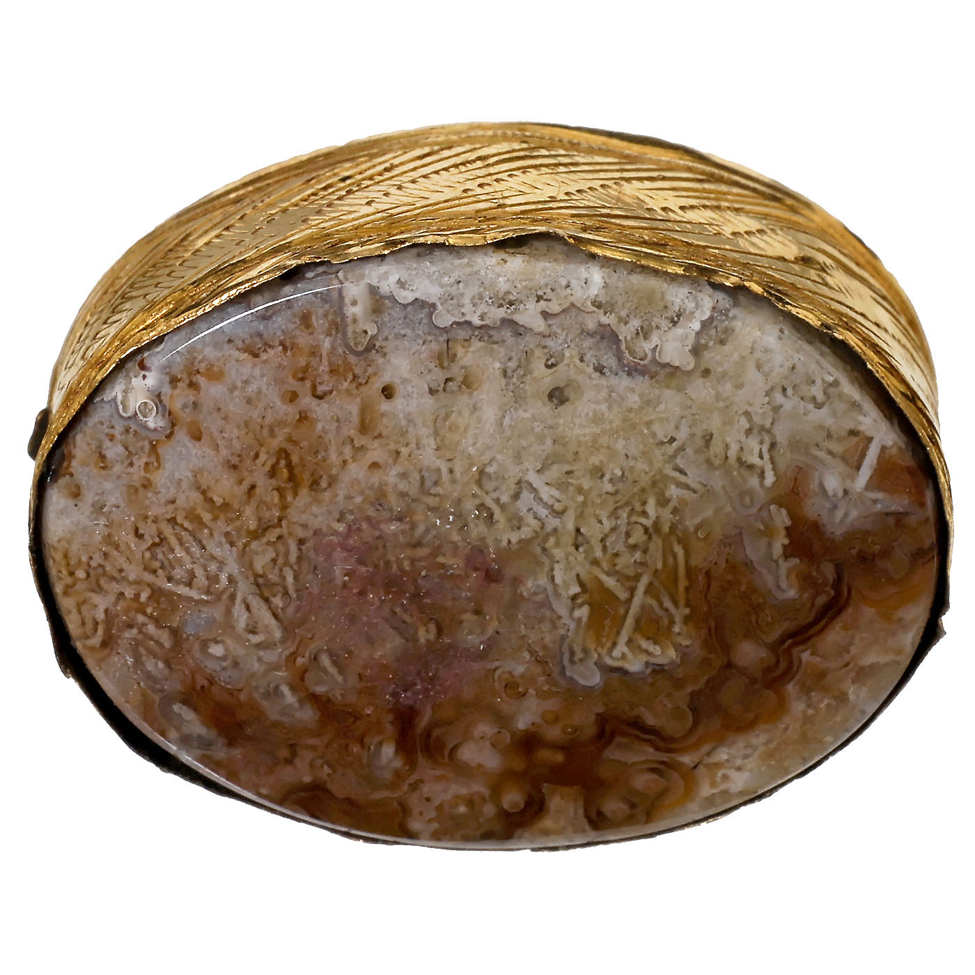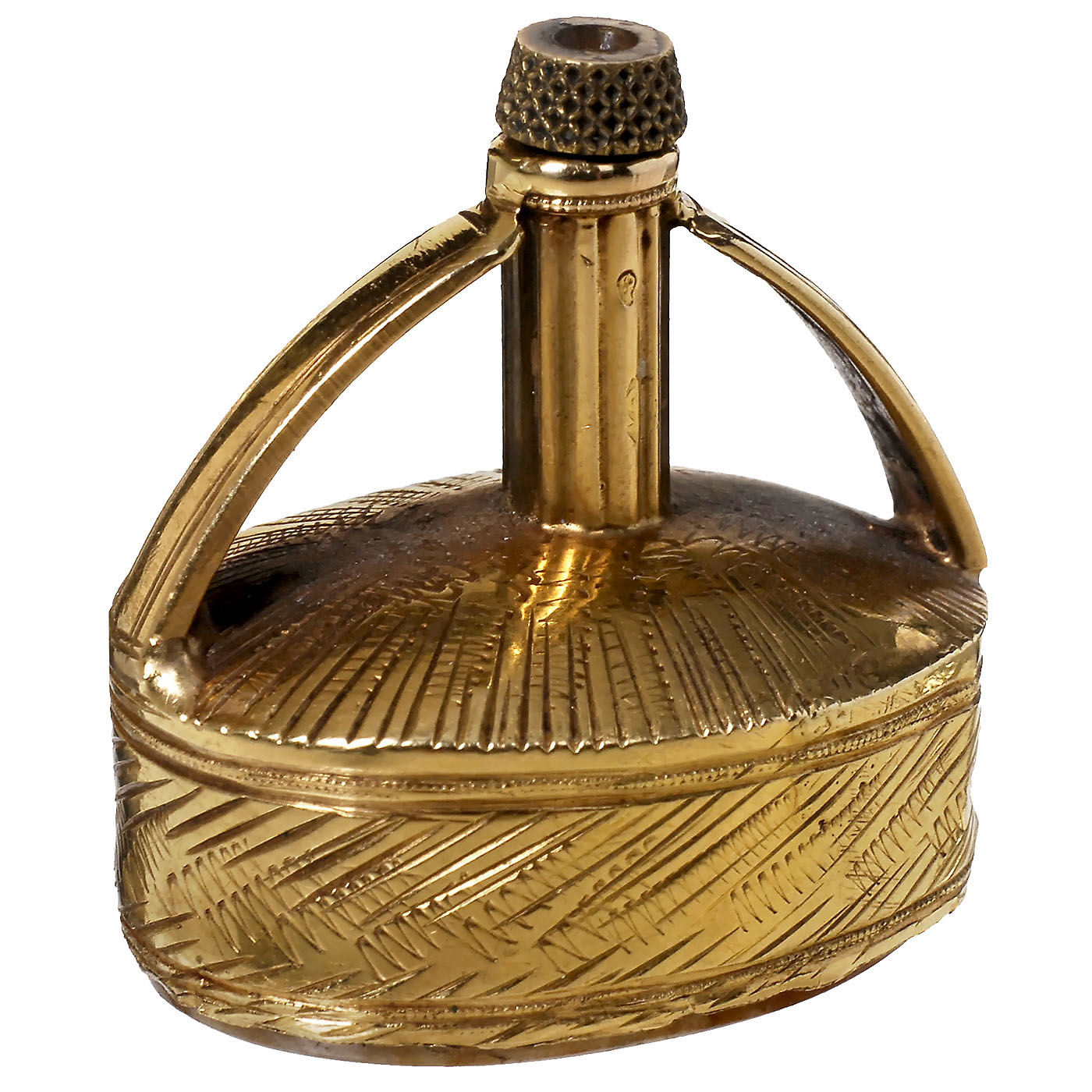 Playing a single air, presumably with barillet movement (not opened for inspection), engraved gold body, replacement winder and agate base, ht. 1 ¼ in. (3 cm), playing condition, at least one tooth loose or damaged, alterations to the case.