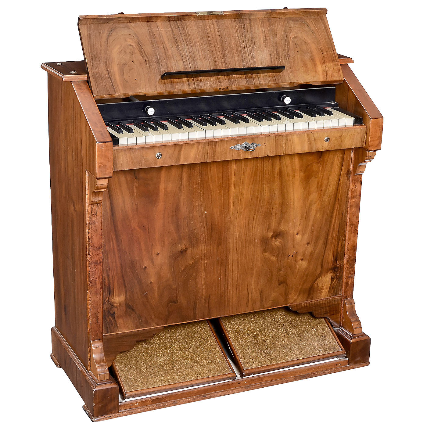 Vacuum system, 2 stops, 49 keys, walnut case 34 x 16 x 35 in., excellent playing condition.